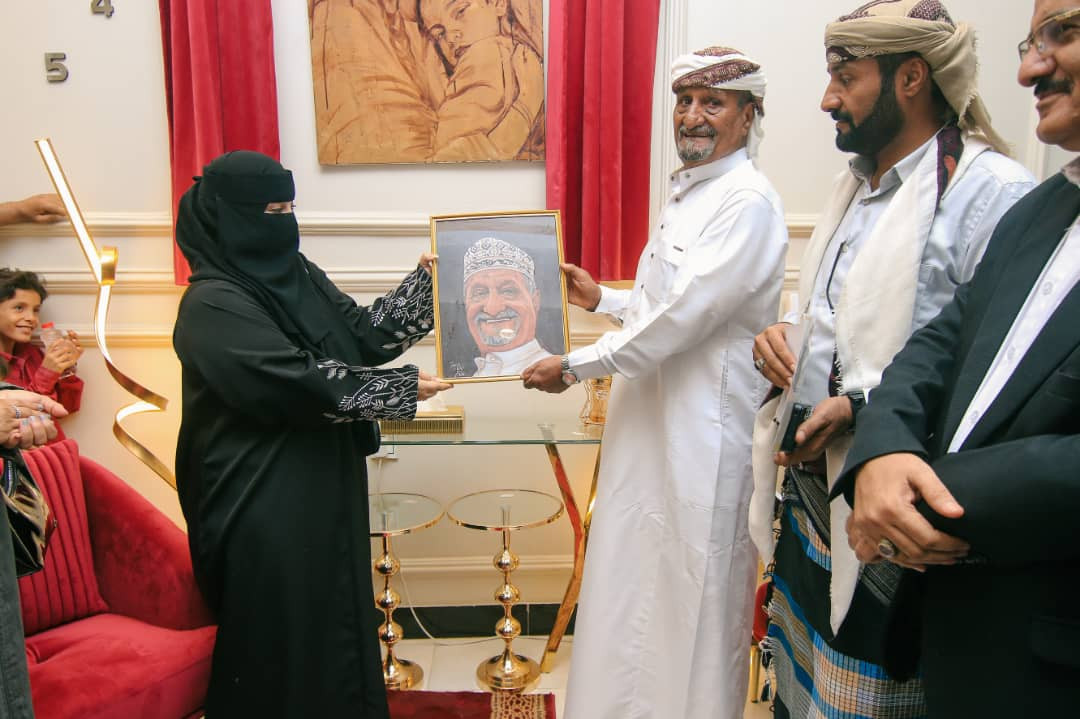 وتسلم رجل الأعمال "صالح العياشي" لوحة احتواء، بعد أن رسى عليه المزاد العلني للوحة بمبلغ 23.000000 مليون ريال يمني، يعود ريعها لصالح دور الأيتام في عدن.