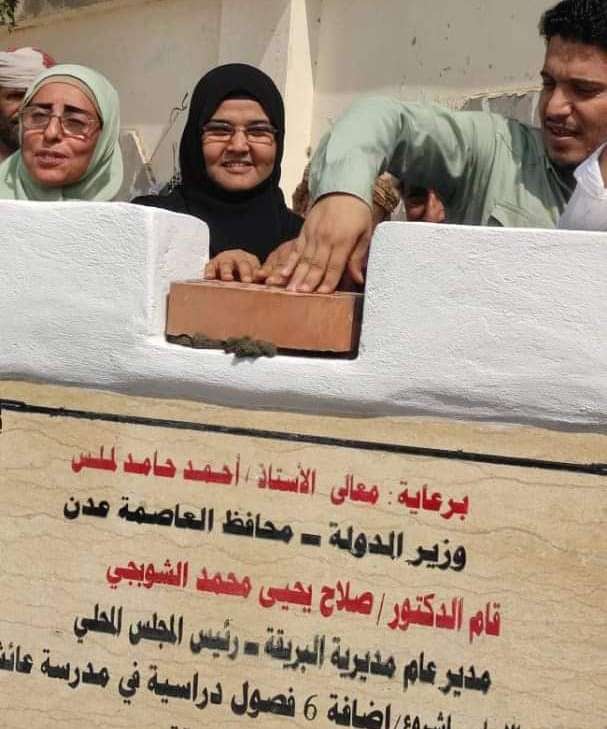 تحت رعاية معالي وزير الدولة - محافظ العاصمة عدن الأستاذ احمد حامد لملس، قام الدكتور صلاح يحيى الشوبجي مدير عام مديرية البريقة - رئيس المجلس المحلي، بوضع حجر الأساس لمشروع إضافة ستة فصول دراسية لمجمع عائشة للبنات في منطقة بئر أحمد، بتمويل ذاتي من السلطة المحلية بالمديرية.