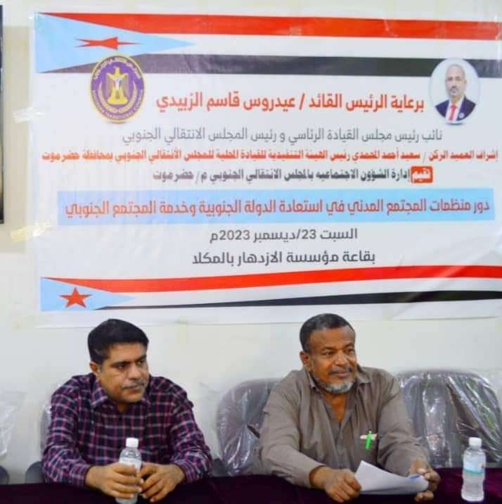 انتقالي حضرموت ينظم ندوة عن دور منظمات المجتمع المدني في استعادة الدولة الجنوبية