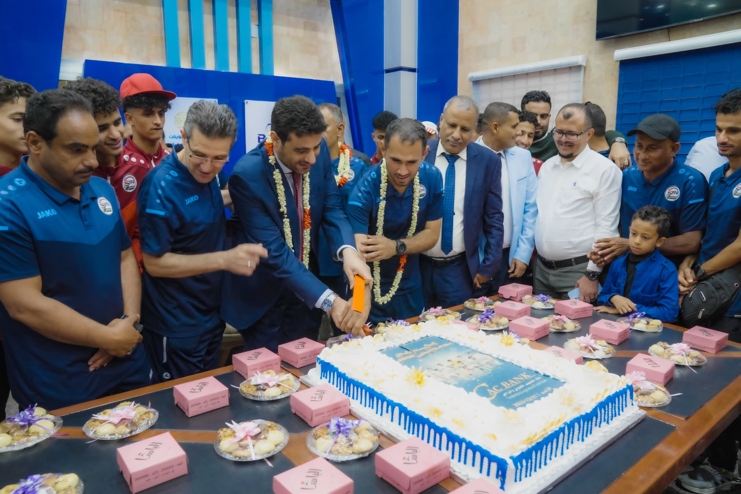واستقبل الأستاذ "حاشد الهمداني" القائم بإعمال رئيس مجلس الإدارة، الرئيس التنفيذي للبنك، بعثة المنتخب، في مبنى الإدارة العامة للبنك بعدن، ورحب بوجودهم في ضيافة مؤسستهم الحكومية "كاك بنك" التي يتشرف باسمه ونيابة عن قيادتها وكل منتسبيها، الاحتفاء بهم وتقديم التهاني والتبريكات لهم بمناسبة تتويجهم ببطولة اتحاد غرب آسيا، للمرة الثانية وإدخال الفرحة والسرور إلى قلوب الملايين من الشعب اليمني في مختلف أرجاء الوطن.