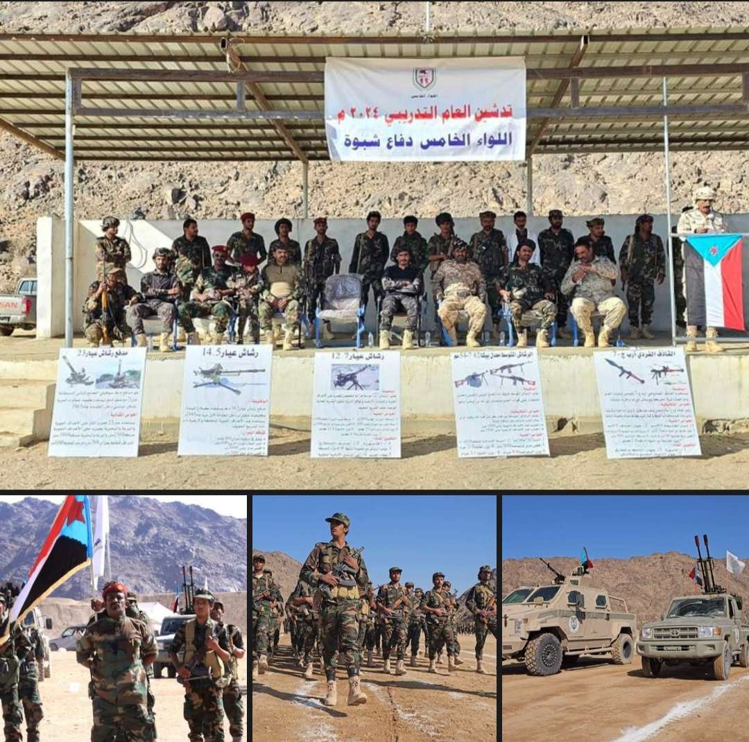بعرض عسكري مهيب... اللواء الخامس دفاع شبوة يدشن العام التدريبي الجديد 2024