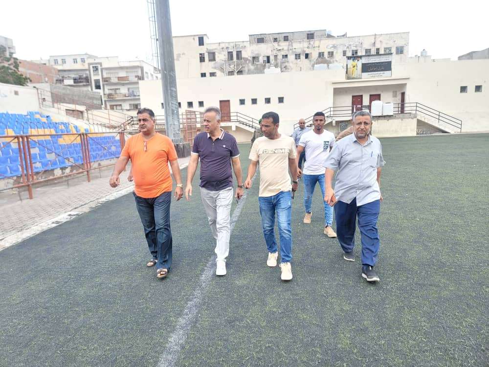 الجاوي يطلع على اعمال تجهيزات صالة اللياقة البدنية بملعب باوزير بالمعلا