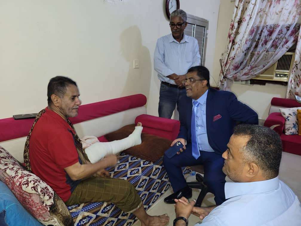 في لفتة انسانية كريمة نابعة من الحرص والمسؤولية والاهتمام قام الاستاذ محمد نصر الشاذلي وكيل اول محافظة عدن ويرافقة القاضي وجدي محمد علون الشعبي مدير عام مديرية التواهي والدكتور محمد حسن عبده الشيخ مستشار محافظ محافظة عدن بزيارة الى منزل الاستاذ سعيد شيباني الامين العام للمجلس المحلي لمديرية التواهي والاطمئنان على صحتة إثر تعرضة لحادث إصطدام بسيارة مسرعة