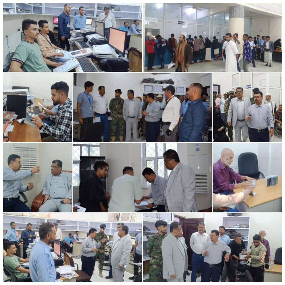 تفقد وكيل اول محافظة عدن / محمد نصر شاذلي صباح امس سير العمل في مركز اصدار الجوازات بمبنى مصلحة الهجرة والجوازات بمديرية خور مكسر بالعاصمة عدن .