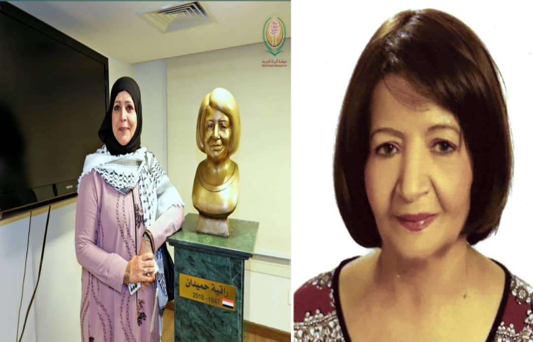 وخلال الزيارة عرضت التماثيل النحاسية لقيادات نسائيةعربية تكريما لجهودهن ومن ضمنهن ، المحامية اليمنية راقية حميدان حيث سبق للجنة الوطنية للمرأة أن رشحت ثلاث شخصيات يمنية نسائية للمنظمة لعمل تمثال نحاسي لهن ضمن الشخصيات القيادية النسائية العربية ضمن النساء القياديات اللواتي تركن بصمة على مستوى العمل الوطني و العربي .