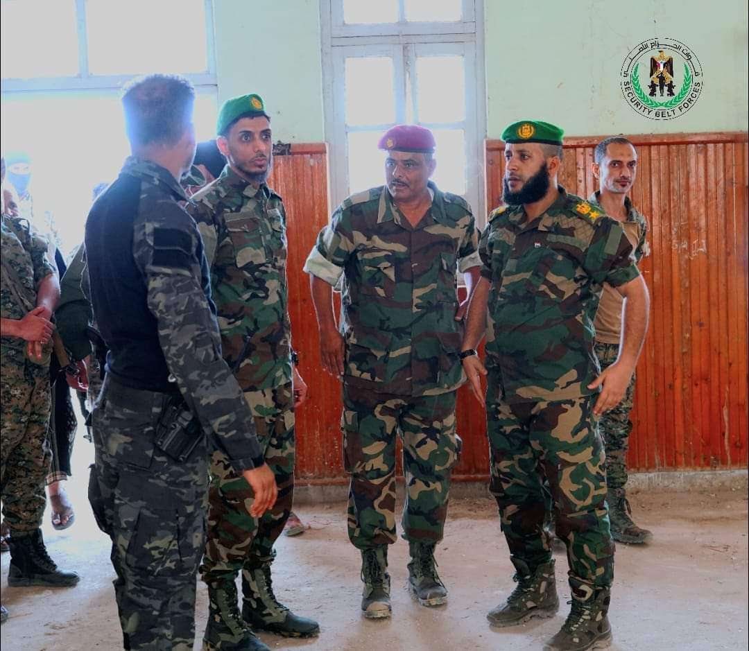 مدير مكتب القائد العام لقوات الحزام الأمني يتفقد معسكر وحدة حماية الأراضي بالعاصمة عدن