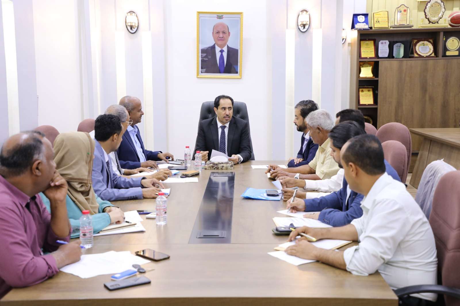وخلال الإجتماع قدم مدير عام الصندوق وضاح الشرفي، تقرير عن عمل الصندوق والإيرادات المحصلة والموازنة للعام الماضي وآلية صرفها، بالإضافة إلى شرح مفصل عن خطة العام الجديد(2024)، والإيرادات المتوقع الحصول عليها من الموردين، وآلية صرفها، والميزانية المخصصة لكل قطاعات الوزارة، وفق الخطط المقدمة منها.