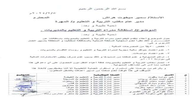 استقالات جماعية لمدراء مكاتب التربية في المهرة