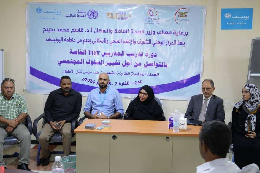 وأوضحت أن المتابعة والتقييم مستمر وستكون هناك خارطة للمشرفين المركزيين ومشرفي المحافظات، وأنه سيتم مناقشة جميع الإشكاليات مع مسؤولي التثقيف خلال هذه الدورة. داعية لاحداث نقلة نوعية في الحملة الوطنية للتحصين ضد شلل الأطفال التي سيتم تنفيذها أواخر الشهر الجاري.