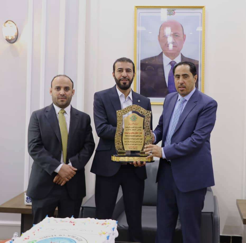 وزير الشباب والرياضة يكرم وكيل الشؤون المالية والإدارية السابق طلال بن حيدرة