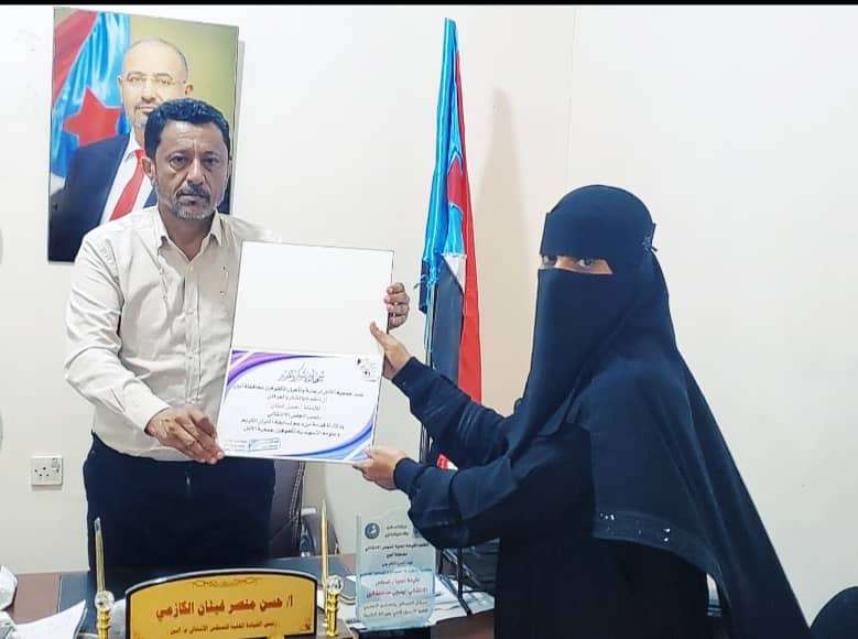 وثمنت من جانبها رئيسة جمعية الأمل الأستاذة نعيمه ناصر جهود قيادة المجلس الانتقالي في المحافظة لدعمها ورعايتها لأنشطة وفعاليات الجمعية وآخرها المسابقة التمهيدية في القران الكريم، متمنية التوفيق والنجاح لقيادة المجلس في المهام الموكلة اليها.