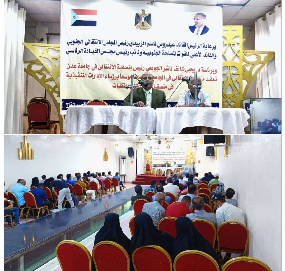 رئاسة منسقية الانتقالي بجامعة عدن تعقد اجتماعاً موسعاً برؤساء الإدارات في الكليات