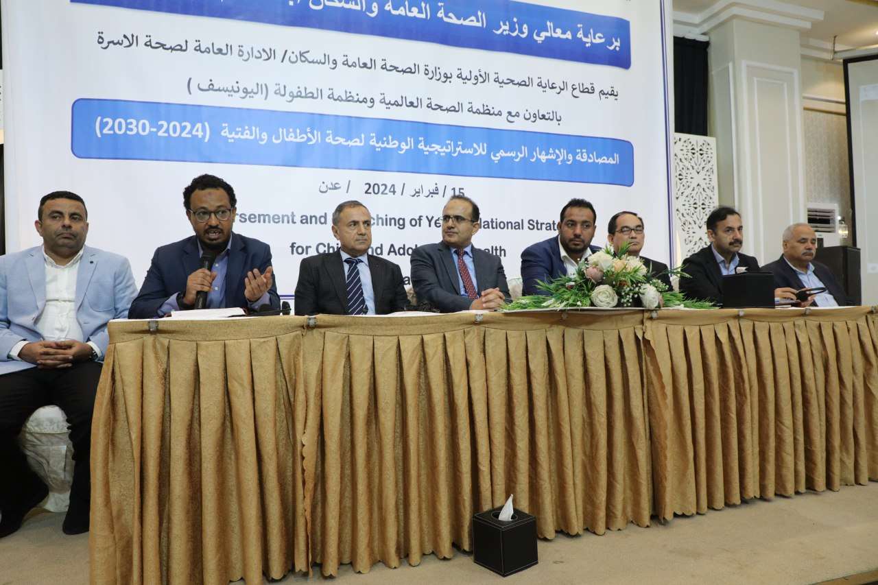 في الافتتاح أكد وزير الصحة الدكتور قاسم بحيبح أن الاستراتجية تأتي لتعزيز صحة الأطفال واليافعين وتحسين الرعاية الصحية لهم وتحديد حقوقهم وهي المنطلق الذي سينطلق منه كثير من الأهداف والخطط للمساهمة في رفع مستوى الوعي الصحي والتثقيف والتغذية والوصول إلى أعلى خدمة صحية.. مؤكدا التزام الوزارة بالعمل على تنفيذ الاستراتيجية وتحقيق أهدافها وتعزيز الشراكة والبنية التحتية في اليمن.