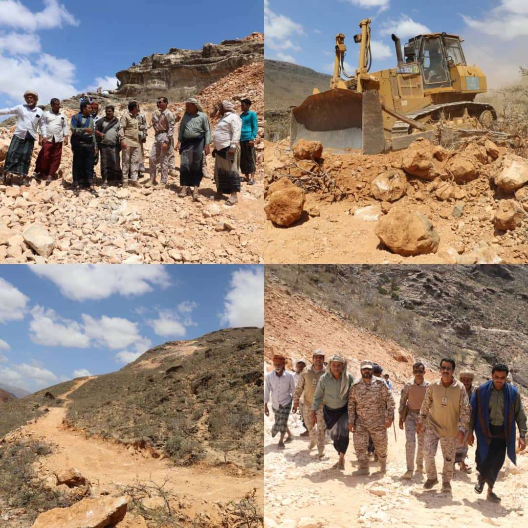 أطلع قائد قوة ٨٠٨للدعم والاسناد سعادة العميد بحري ركن منيف المطيري ووكيل محافظة أرخبيل سقطرى سعاد العميد ركن صالح علي السقطري على سير العمل في عقبة "دي عاره " بمنطقة شيزب المطلة على جنوب محافظة سقطرى .