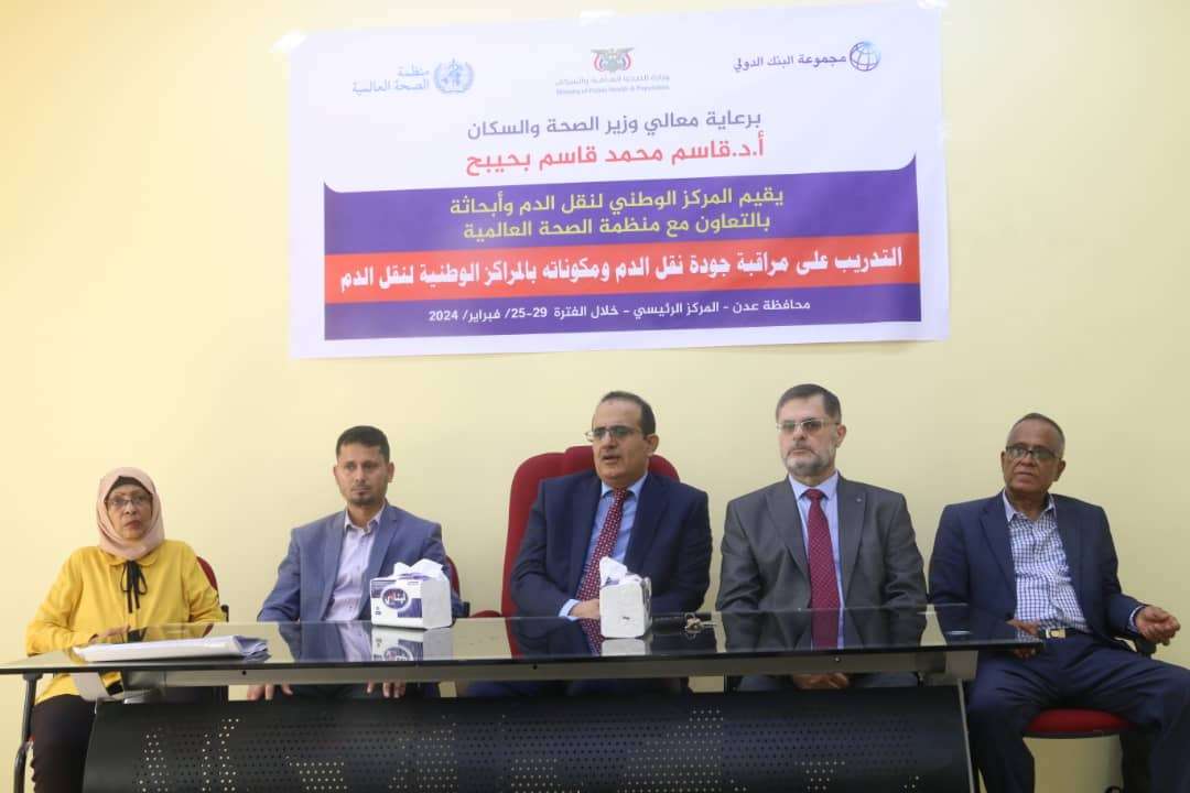 نفذ المركز الوطني لنقل الدم وأبحاثه بعدن، المرحلة الأولى من البرنامج التدريبي الخاص بالجودة الشاملة في خدمات نقل الدم، والذي تنظمه الإدارة العامة للطب التشخيصي بقطاع الطب العلاجي، بالتعاون مع منظمة الصحة العالمية وبدعم من البنك الدولي.