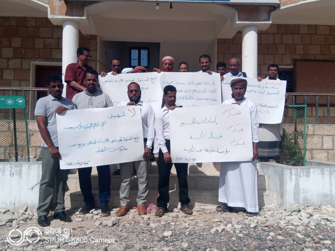 وقفة احتجاجية لأعضاء هيئة التدريس في كليتي التربية والمجتمع بمحافظة سقطرى للمطالبة بحقوقهم