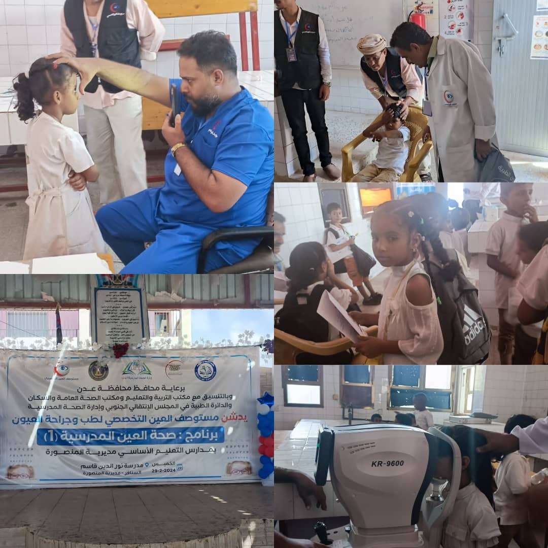 دشن مستوصف العين التخصصي لطب وجراحة العيون، صباح الخميس، برنامج صحة العين المدرسية، برعاية محافظ محافظة عدن أحمد حامد لملس، وبالتنسيق مع مكتبي التربية والتعليم والصحة العامة والسكان، والدائرة الطبية بالمجلس الانتقالي الجنوبي، لعمل الفحص الدوري لعيون الطلاب والمدرسين، في مدرسة نور الدين قاسم بالمنصورة عدن.
