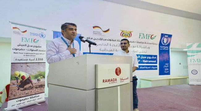 دشن بمدينة المكلاـ وكيل محافظة حضرموت للشؤون الفنية المهندس أمين بارزيق ورئيس المؤسسة الطبية الميدانية الدكتور مهيب عباد والأستاذ مسعود خان مدير مكتب برنامج الأغذية العالمي بمحافظة حضرموت و عدد من مدراء عموم المديريات المستهدفة ، مشروع سبل العيش متعدد السنوات ، الذي يأتي برعاية من محافظة محافظة حضرموت الأستاذ مبخوت مبارك بن ماضي والشراكة مع برنامج الأغذية العالمي وتمويل من الوزارة الاتحادية للتعاون الاقتصادي والتنمية الألماني.