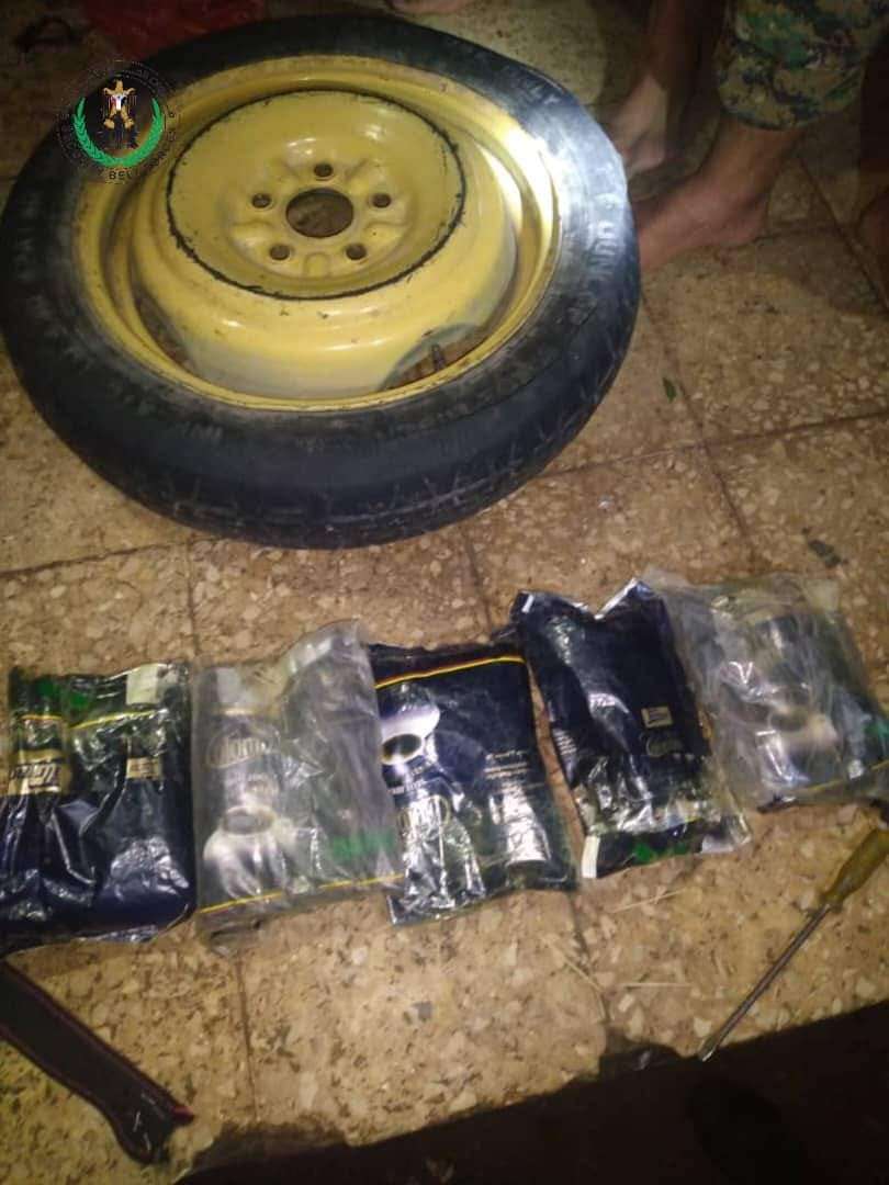 وأضاف: "إن المتهمين حاولا تهريب كمية الحشيش على متن باص نوع (فوكسي)، وكانت مخبأة بشكل محكم داخل الإطار الاحتياطي".