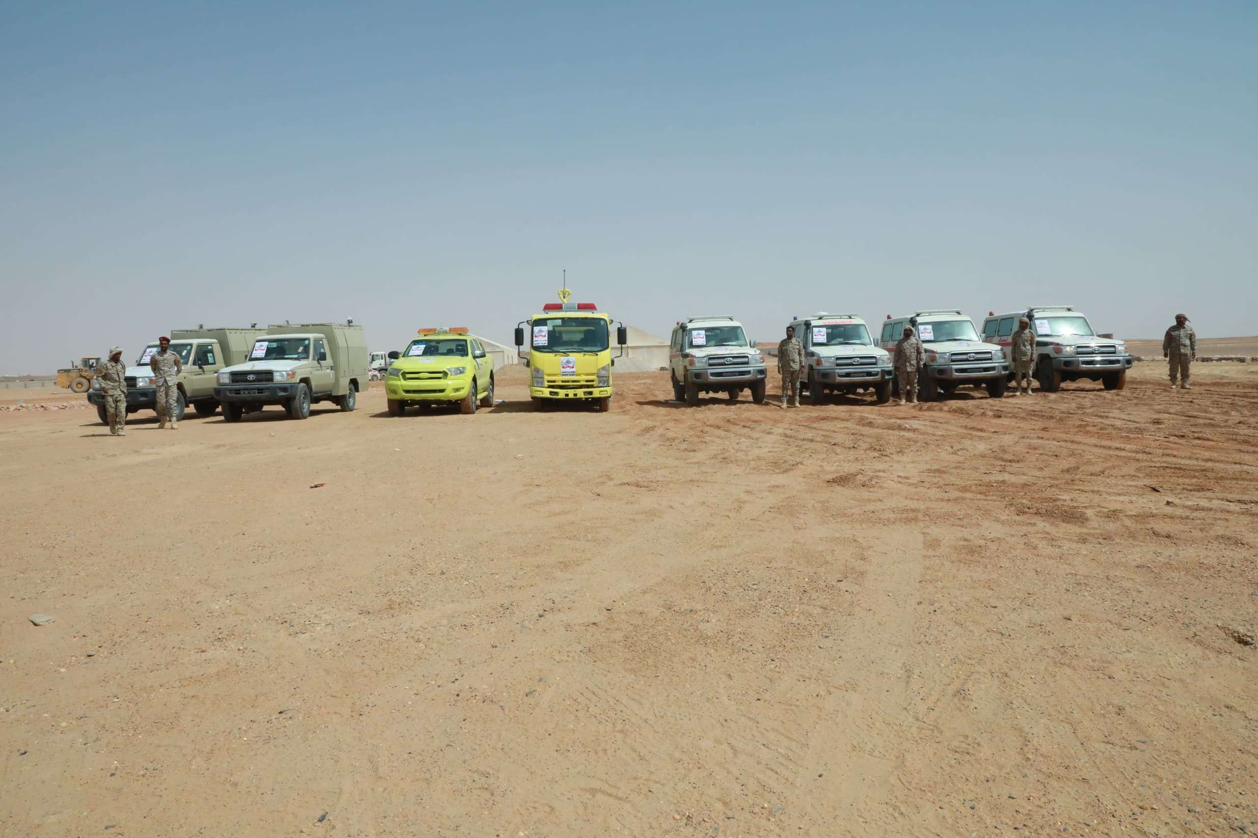 جهزت قوات درع الوطن مخيم ايواء للعالقين في الوديعة مزود بحمامات متنقلة وسيارات إسعاف وبوز مياه، تنفيذا لتوجيهات القائد العام لقوات درع الوطن العميد بشير الصبيحي.