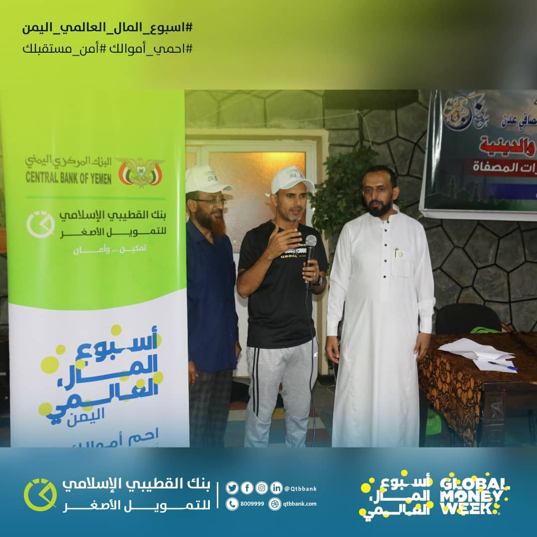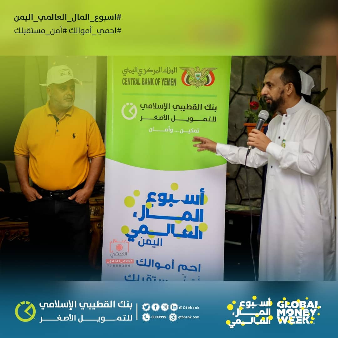 الجدير ذكره أن بنك القطيبي الإسلامي للتمويل الأصغر بدأ مساء أمس الاثنين بتنفيذ عدد من الفعاليات والأنشطة والنزولات، في إطار فعاليات أسبوع المال العالمي التي يقيمها البنك.