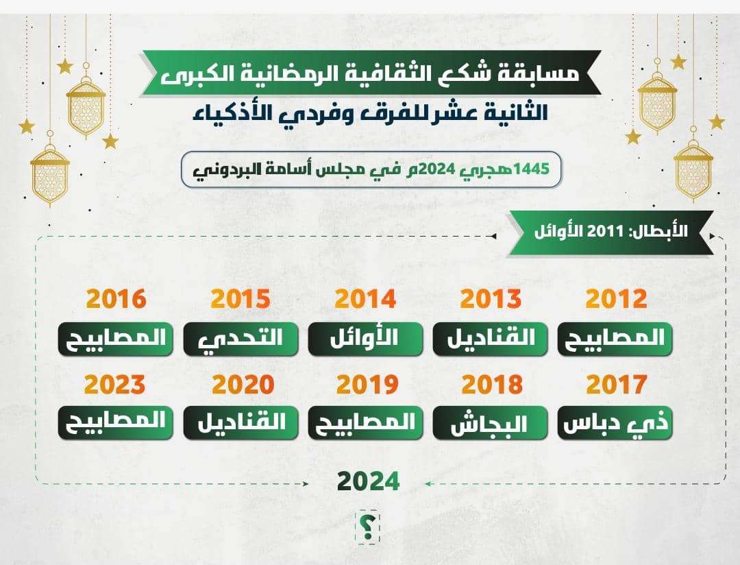 تواصل منافسات المرحلة الأولى لمسابقة شكع الثقافية الرمضانية الكبرى الثانية عشر للفرق والثانية لفردي الأذكياء