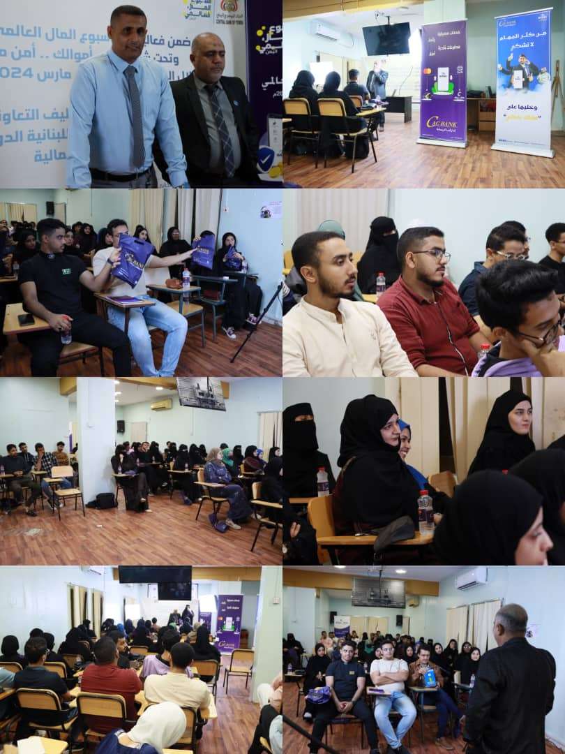 نظم بنك التسليف التعاوني والزراعي «كاك بنك» - الإدارة العامة عدن بالشراكة مع الجامعة اللبنانية ورشة عمل بعنوان الثقافة المالية، وذلك ضمن فعاليات اسبوع المال العالمي الذي يمتد خلال الفترة من 18 الى 24 مارس 2024.