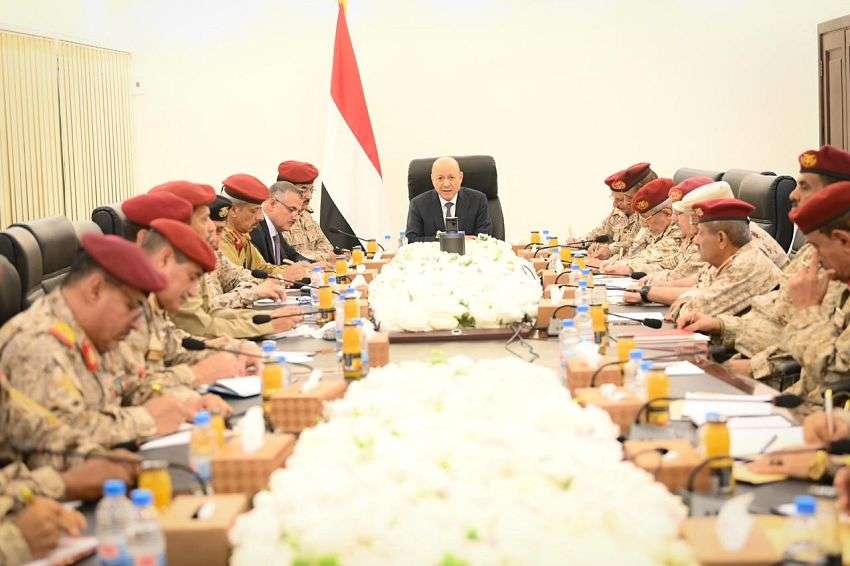عقد الرئيس الدكتور رشاد محمد العليمي، رئيس مجلس القيادة الرئاسي، القائد الاعلى للقوات المسلحة، اجتماعا موسعا بقيادة وزارة الدفاع و رئاسة هيئة الاركان العامة، ورؤساء الهيئات، وقادة القوات والمناطق والمحاور العسكرية، وهيئة العمليات المشتركة.