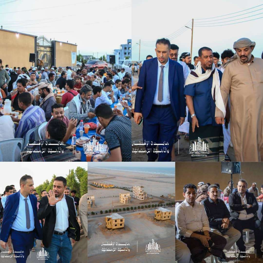 أقامت إدارة مشروع "سماء مدينة الخليج العربي" مساء اليوم الجمعة، مأدبة إفطار صائم وأمسية ثقافية في موقع المدينة شرق منطقة العلم بمحافظة أبين، حضرها المئات من الإعلاميين والنشطاء والأكاديميين والمثقفين، ورجال الأعمال، والمشايخ والشخصيات الاجتماعية، والقيادات العسكرية والأمنية، كما حضرها مسؤولون في الحكومة والسلطة المحلية بمحافظة أبين.