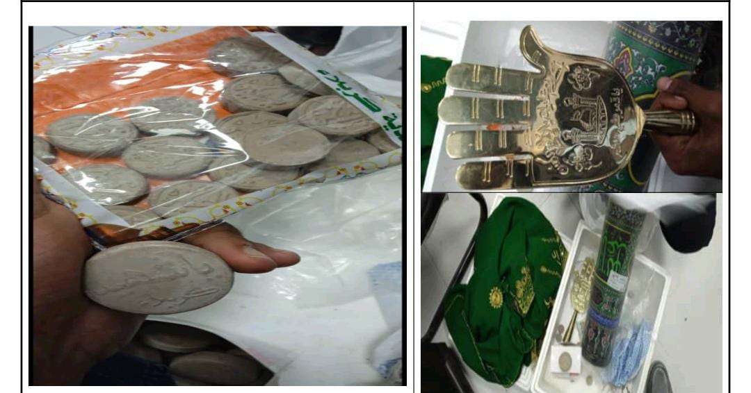 وتضمّنت الضبطية مجموعة متنوعة من المقتنيات والأدوات والشعارات التي يستخدمها الشيعة في المناسبات ذات الطابع الطائفي ومنها التعويذة المعروفة بكف العباس.