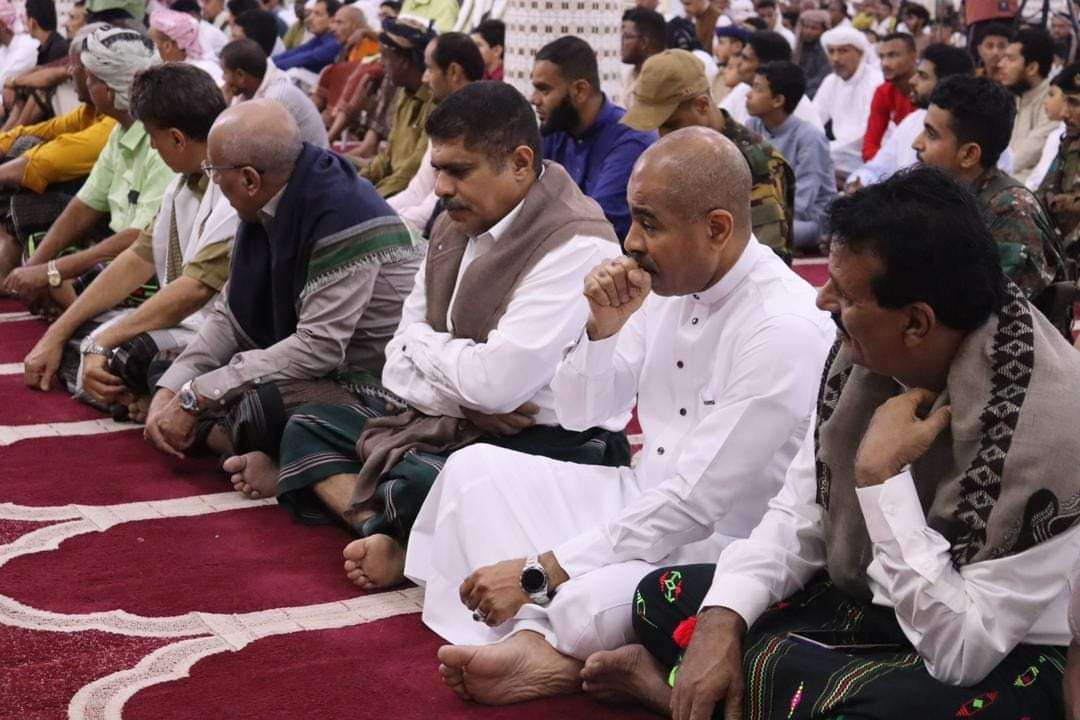وعقب آداء الصلاة وانتهاء الخطبتين، تبادلت قيادة الانتقالي، مع جموع المصلين التهاني والتبريكات.