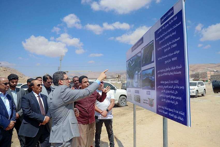 واطلع رئيس الوزراء، على سير العمل بمشروع شق وسفلتة المسار الجديد لطريق الدائري "وسط"، بطول 4 كيلو و 400 متر، ويرتبط من منطقة الغويزي بديس المكلا الى طريق الغليلة امبيخة، والذي ينفّذ على اتجاهين وسيسهم في إحداث نقلة تنموية بالمنطقة والتخفيف من حالة الازدحام بديس المكلا، ويفتح مجالاً للقواطر ومختلف العربات للتوجه مباشرة من الغويزي باتجاه مدينة فوة.