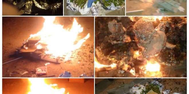 حيث تم مصادرة كمية من القات ومن ثم اتلافها واحراقها بداخل إدارة الأشغال بحضور مندوبي الاشغال ورجال الامن والبائع.
