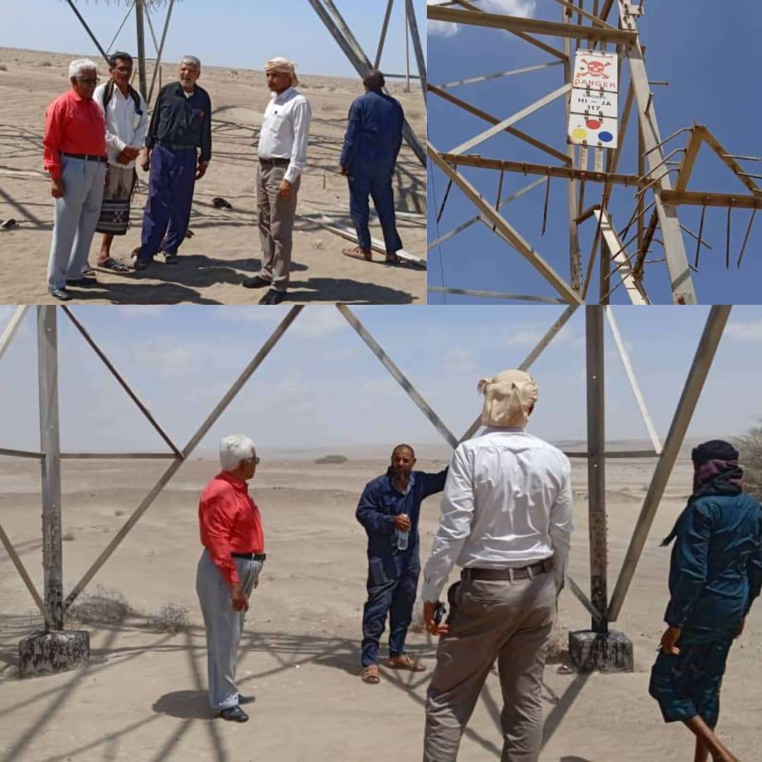 مدير عام كهرباء أبين يتفقد الأعمال الجارية أثر تعرض أبراج خط النقل 132ك.ف للسرقة والتخريب