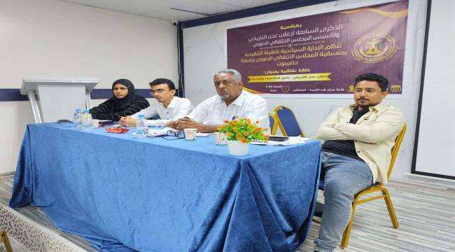 منسقية الانتقالي بجامعة حضرموت تنظم حلقة نقاشية بعنوان "إعلان عدن التاريخي( ما بين المكتسبات والتحديات)
