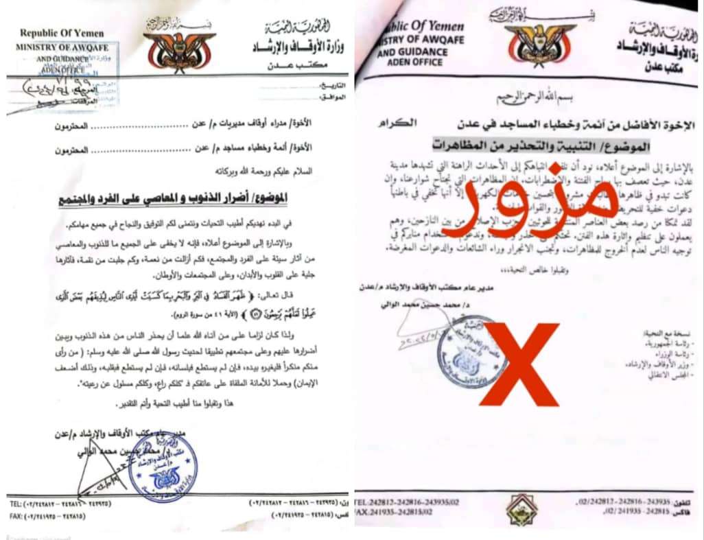 مدير اوقاف عدن ينفي صحة تعميم بشأن المظاهرات