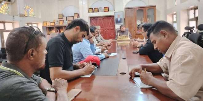 حضر الاجتماع وكيل المحافظة رائد الجريبي مدراء عموم مكاتب الزراعة والري يحيى بن ماجد والمصائد السمكية احمد علي عثمان والهيئة العامة لحماية البيئة سالم حواش.