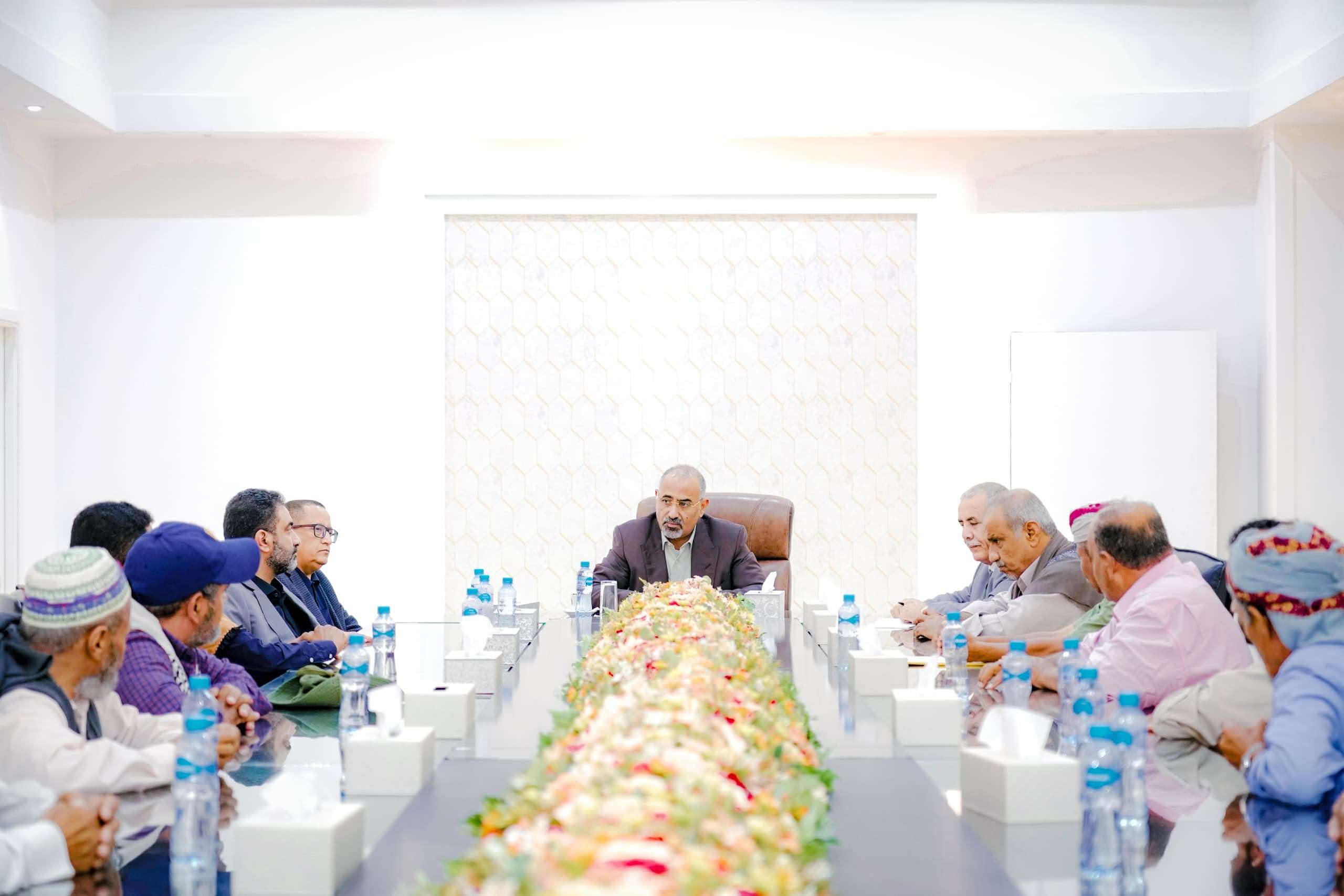 واستمع الرئيس القائد من الحاضرين إلى شرحٍ مفصلٍ عن الأوضاع في حجر والمعاناة اليومية التي يواجهها أبناء المنطقة جراء الاعتداءات الحوثية شبه اليومية، وجهود الوجهات والشخصيات الاجتماعية في حل الإشكاليات والقضايا التي تشهدها المنطقة.