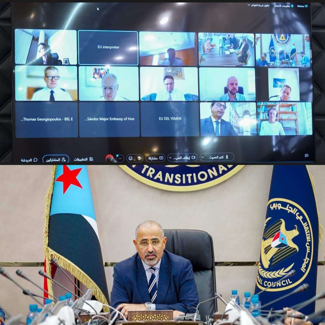 التقى الرئيس القائد عيدروس قاسم الزُبيدي رئيس المجلس الانتقالي الجنوبي، نائب رئيس مجلس القيادة الرئاسي اليوم الخميس، سفراء دول الاتحاد الأوروبي لدى بلادنا برئاسة غابرييل مونيرا فينيالس رئيس البعثة، عبر الاتصال المرئي.