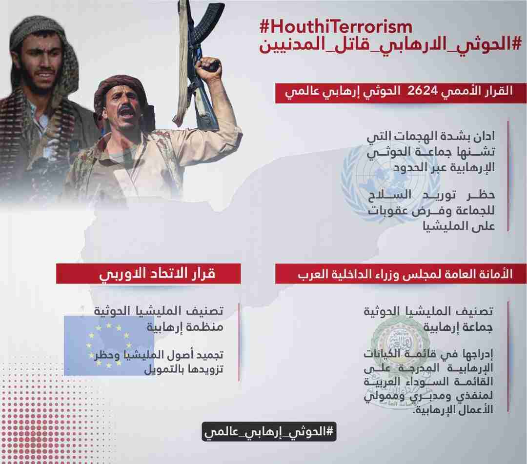 قرارات دولية وإقليمية تصنف الحوثي إرهابي " انفوجرافيك "