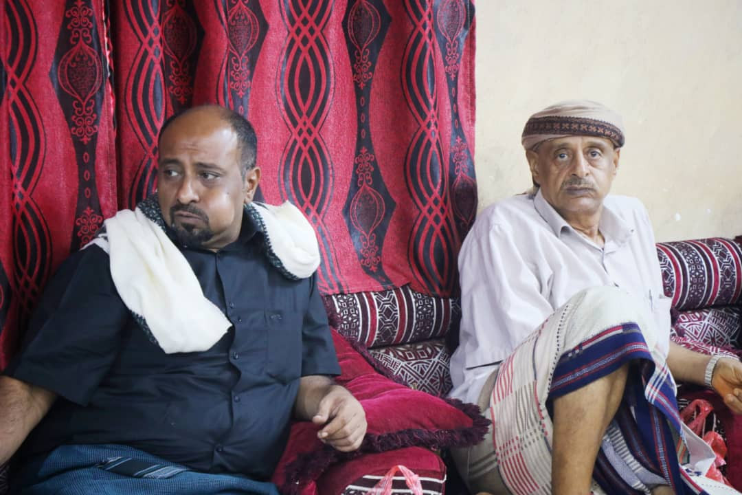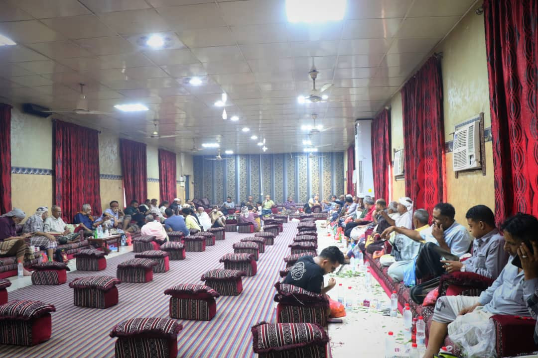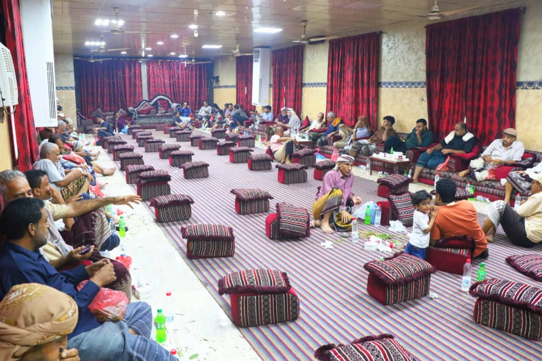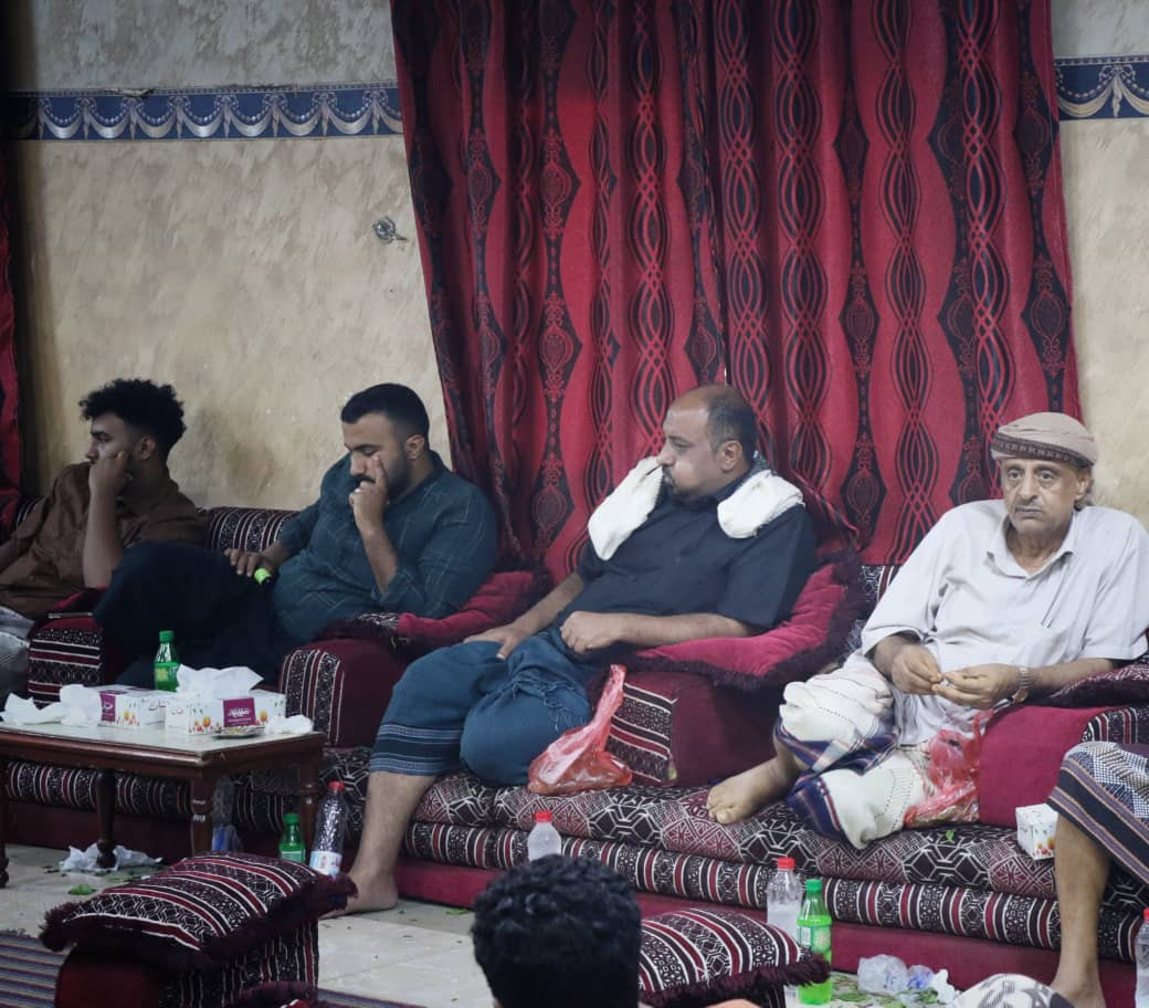 أبناء الفقيد "عبيد جعموم القعيطي" يستقبلون العزاء في وفاة والدهم بقاعة التاج بعدن