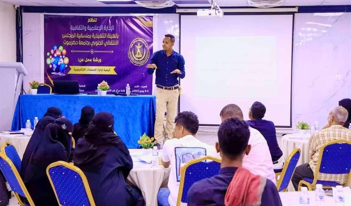 منسقية الانتقالي بجامعة حضرموت تنظم ورشة عمل حول إدارة الصفحات الالكترونية