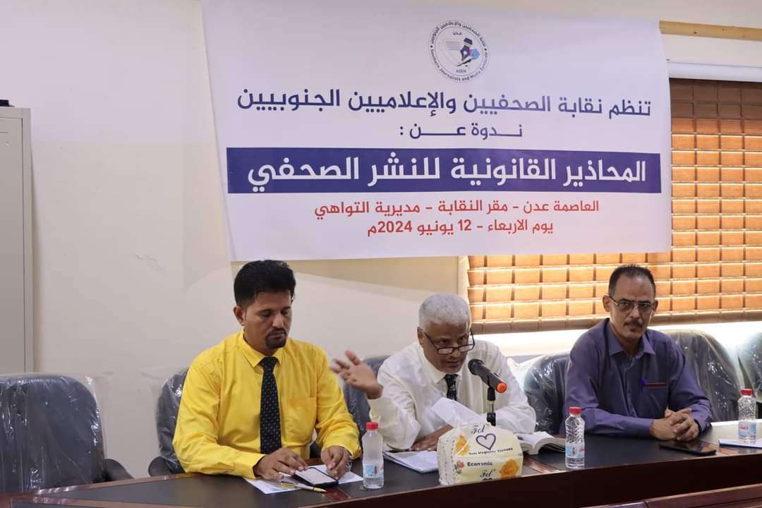شارك بالندوة عدد من الصحفيين والإعلاميين والمحامين والقانونيين بالعاصمة عدن.
