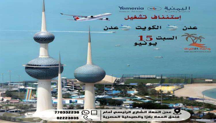 وقالت ادارة طيران اليمنية ان الرحلات الجوية بين عدن والكويت سوف تعاود التشغيل ابتدأ من يوم السبت القادم.