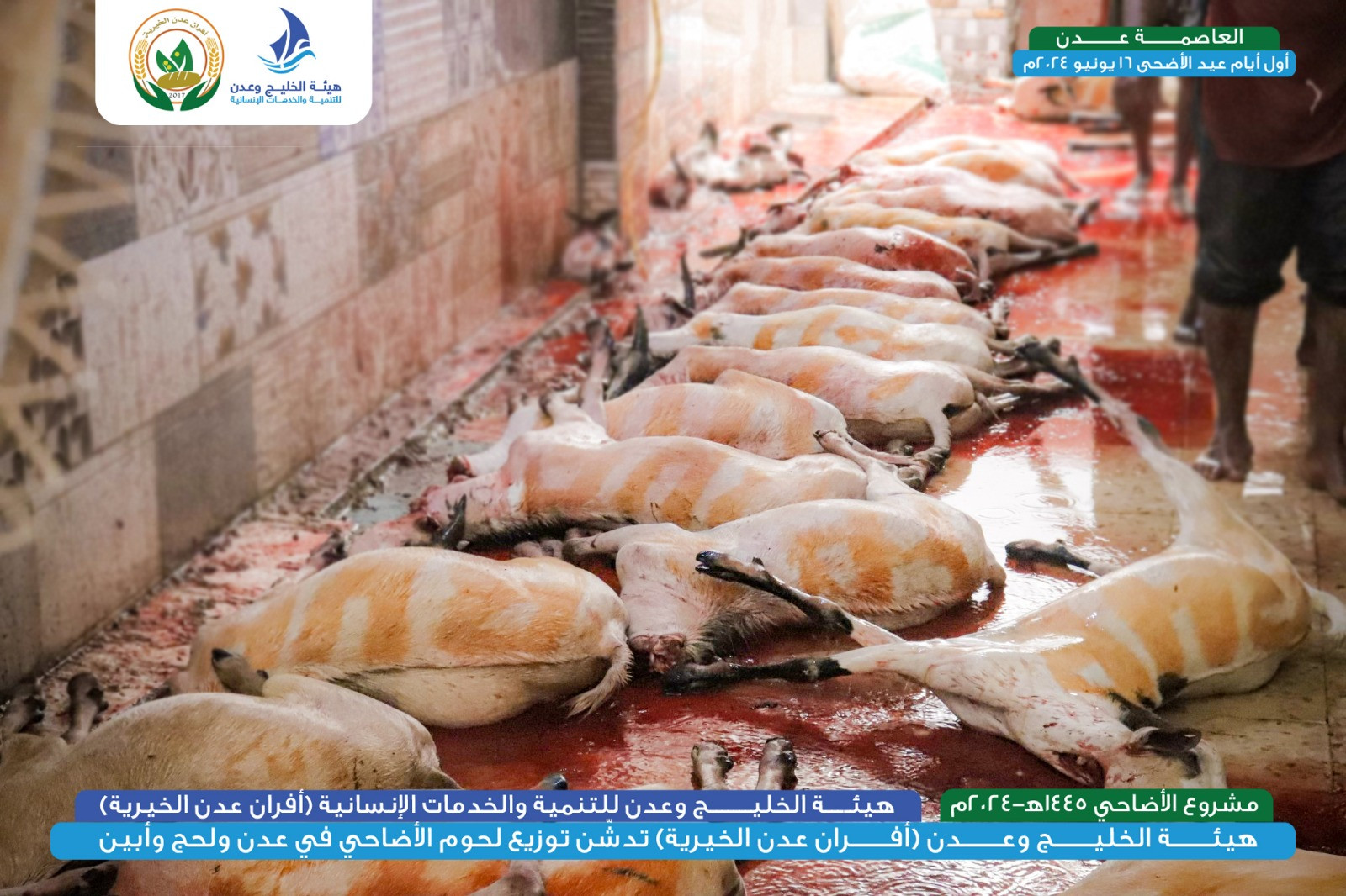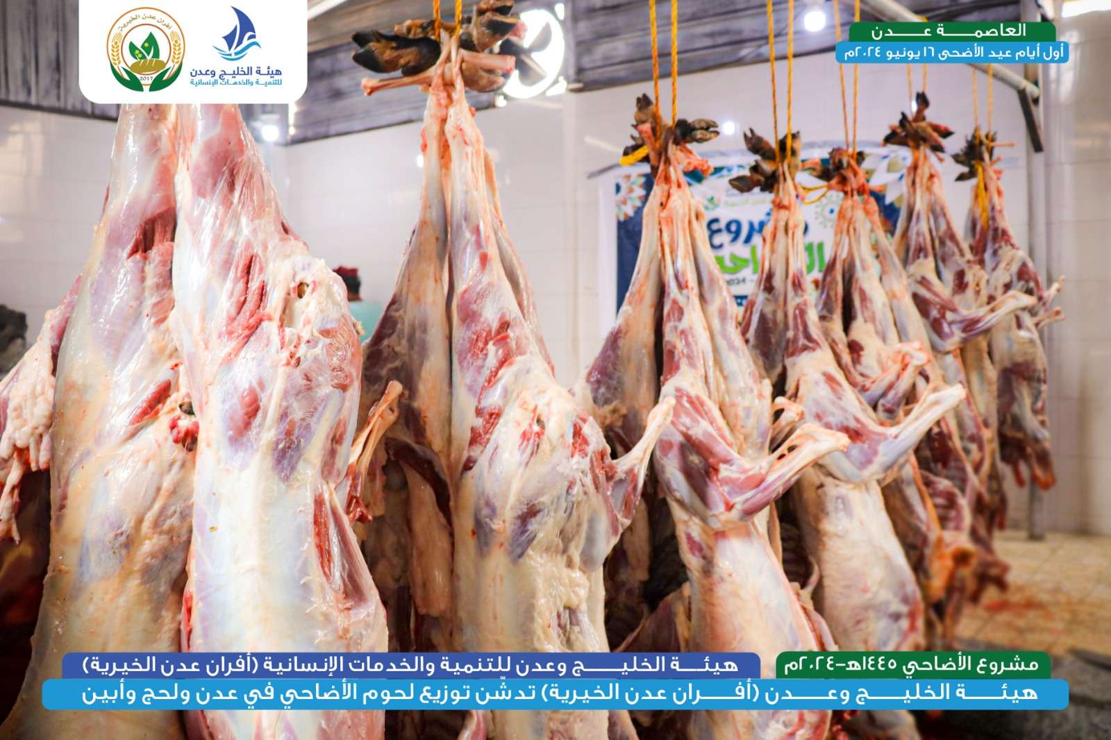 وأوضح المدير التنفيذي لهيئة الخليج وعدن الأستاذ سيف اليهري، أن حملة توزيع لحوم الأضاحي استهدفت 1868 أسرة، من الأسر الفقيرة المتعففة.