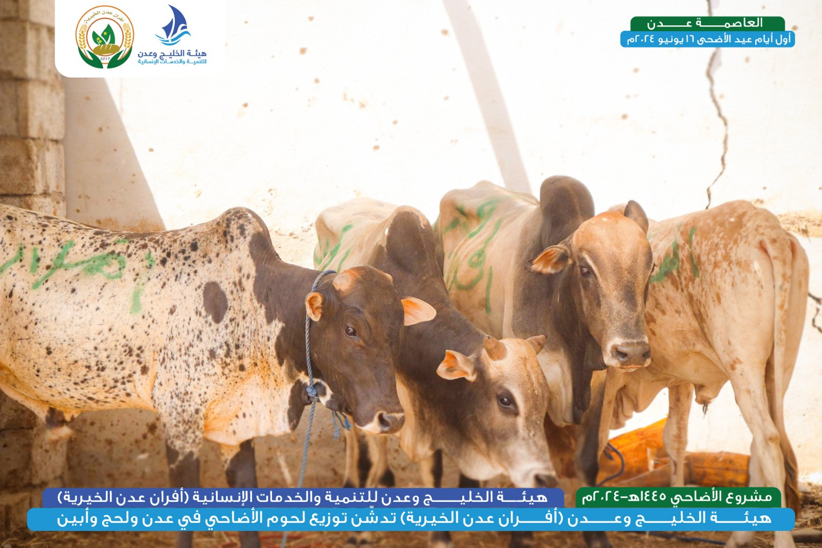 هيئة الخليج وعدن (أفران عدن الخيرية) تدشّن توزيع لحوم الأضاحي في عدن ولحج وأبين
