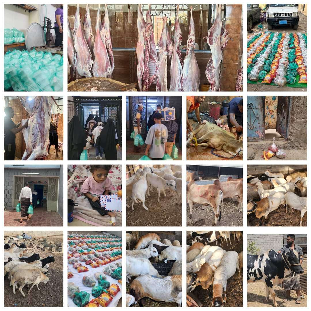 وقامت المبادرة بتوزيع لحوم 8 عجول و50 من الأغنام، إضافة إلى توزيع مواد غذائية وخضار، وبلغ عدد المستفيدين حوالي ألفي أسرة في محافظتي عدن ولحج.