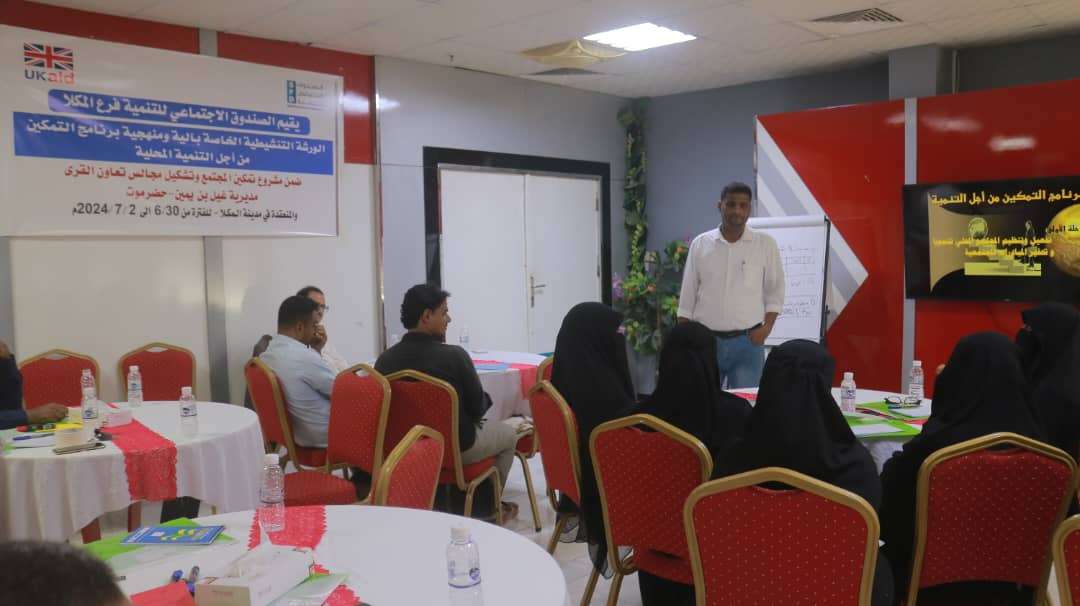 نفذ الصندوق الاجتماعي للتنمية فرع المكلا صباح اليوم دورة تدريبية مهمة تحت عنوان "آلية ومنهجية برنامج التمكين من أجل التنمية المحلية"، في إطار مشروع تمكين المجتمع وتشكيل مجالس تعاون القرى.