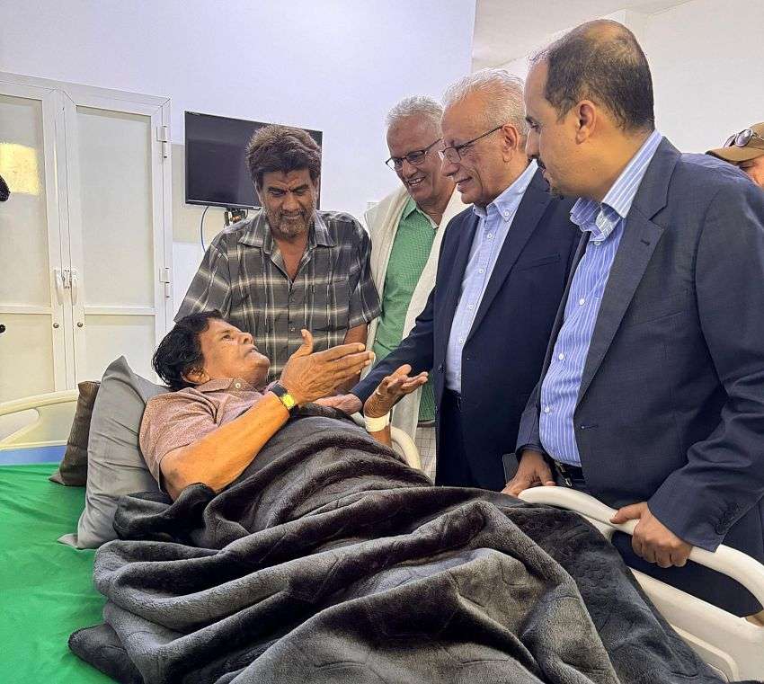 ونقل الشعيبي والارياني، تحيات فخامة الرئيس الدكتور رشاد محمد العليمي، رئيس مجلس القيادة الرئاسي، للفنان عوض احمد واهتمامه بمتابعة حالته الصحية، وتمنياته له بالشفاء العاجل..مشيرين الى توجيهات فخامته بعلاجه على نفقة الدولة وتوفير كل ما يلزم حتى يتماثل للشفاء.