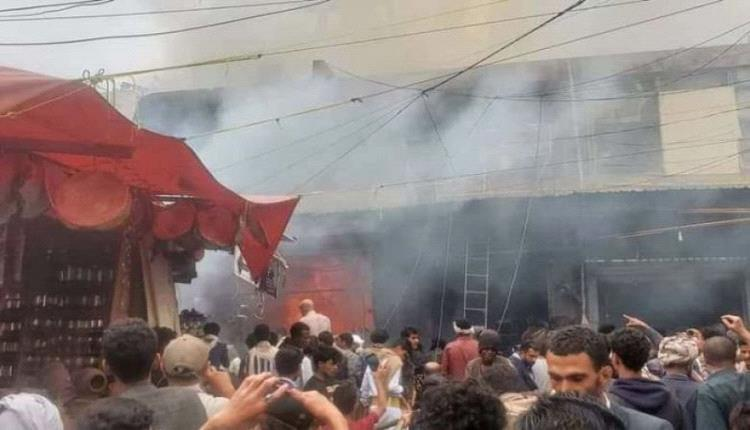 حريق هائل يلتهم عدة محلات تجارية في صنعاء